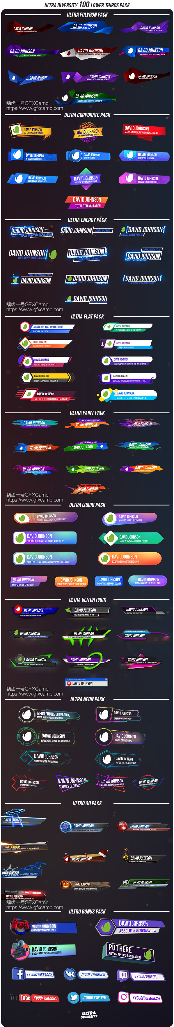 AE模板-100组栏目包装人名字幕条文字动画