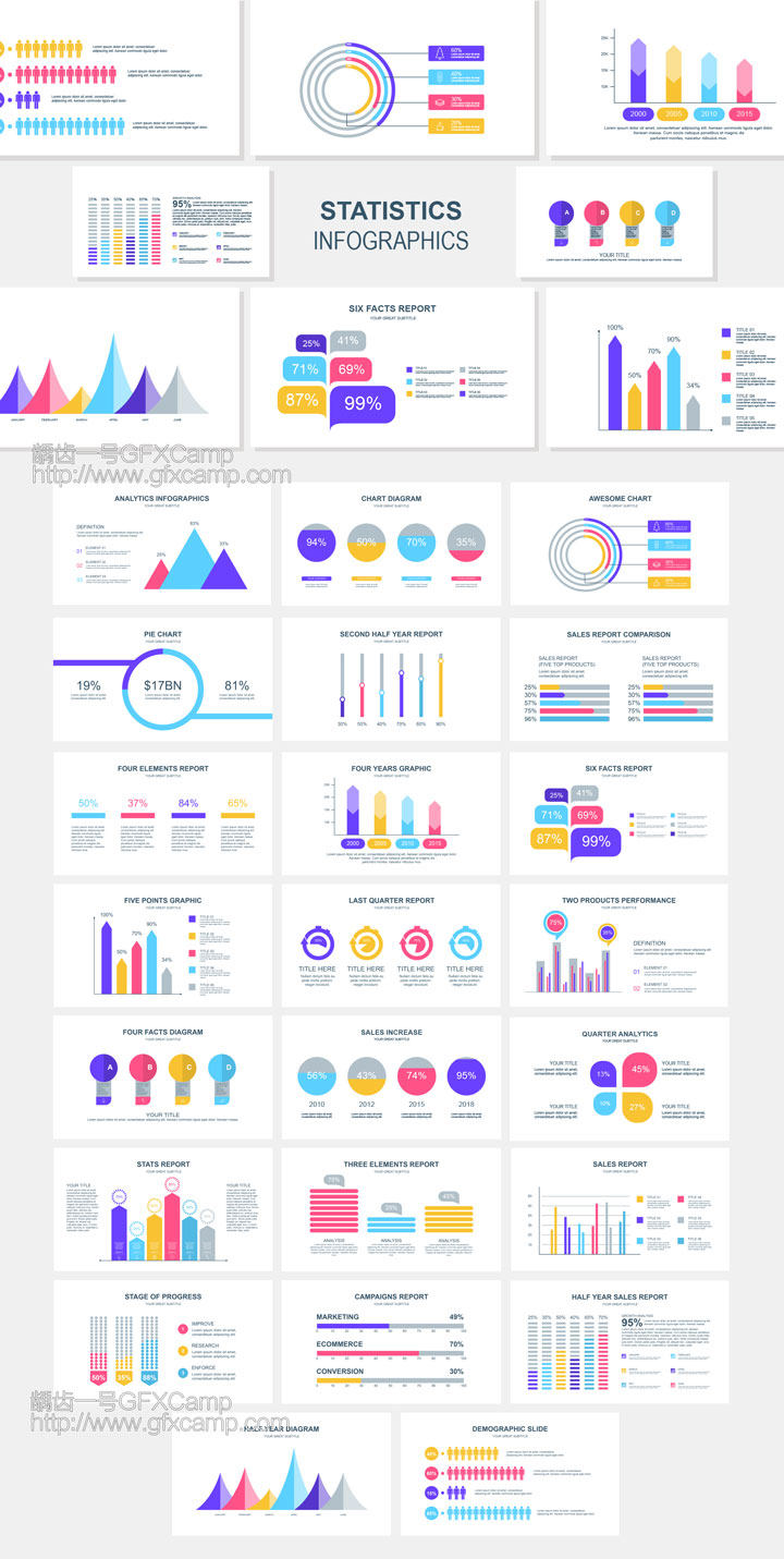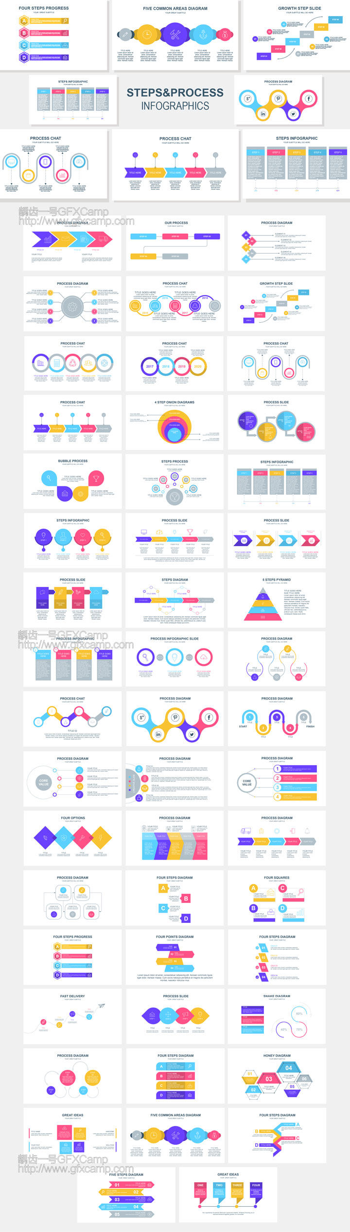 包含圆环、步骤、时间线、箭头等多种风格共150个数据信息展示动画,颜色、文字、数值等全部可以修改