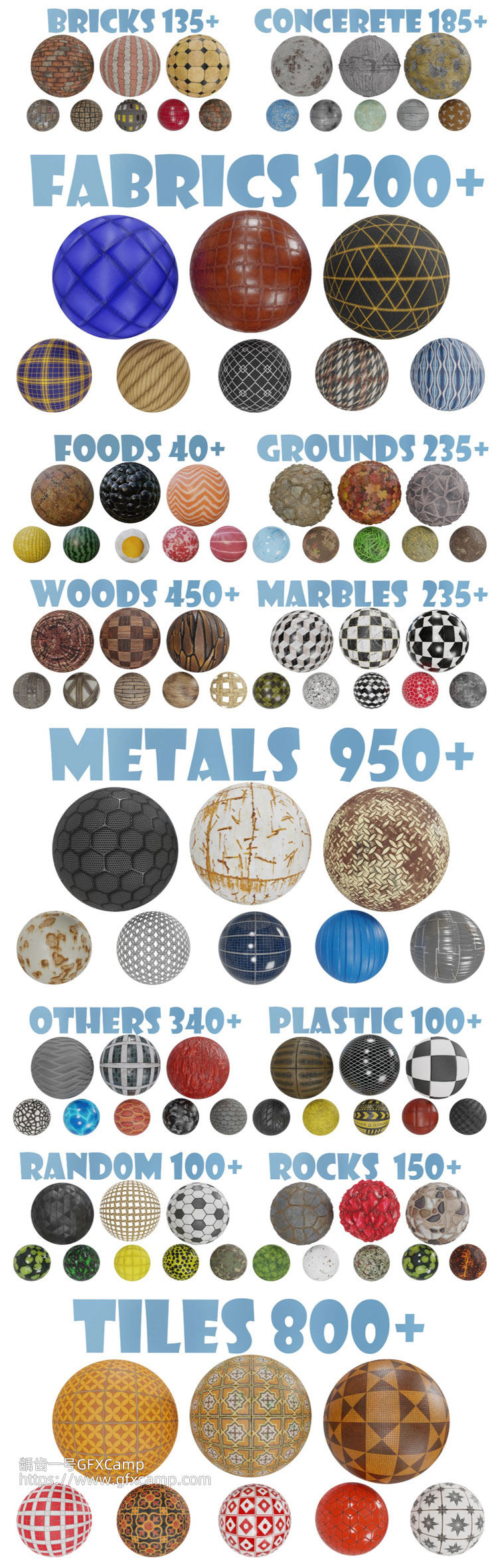 Blender 5000+PBR材质贴图资产预设库 砖墙石头地面钢铁木纹食物布料塑料等