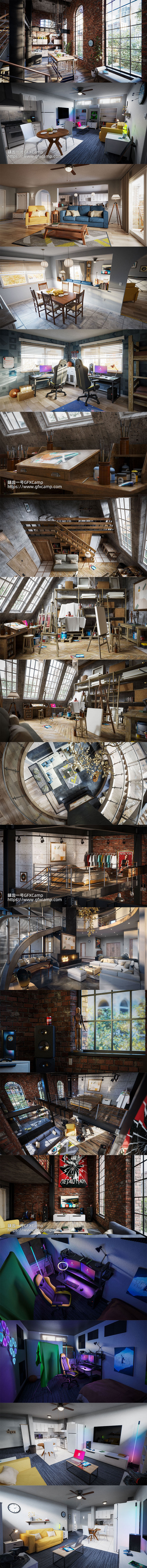 包含双层公寓、阁楼、电竞房间、起居室、客厅等场景3D模型,是5个直接做好的场景,每个模型都十分精细,包含4K分辨率贴图材质,Blender格式