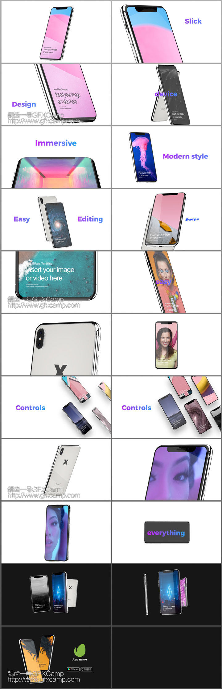 AE模板-iPhoneX手机快闪风格APP展示动画片头