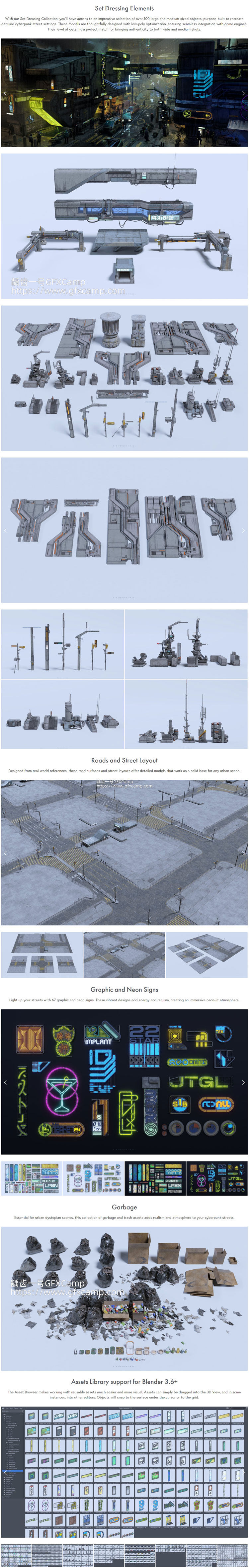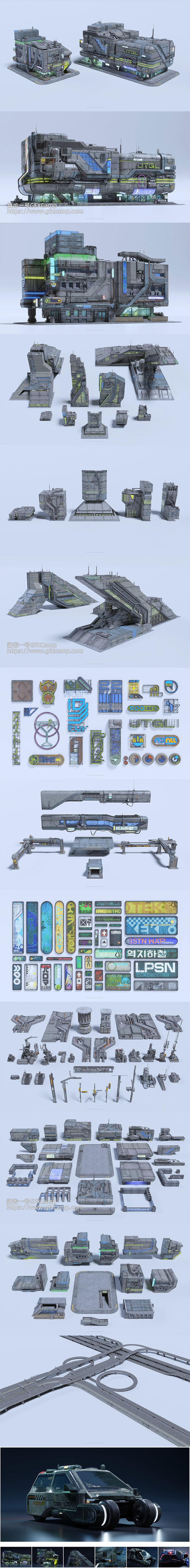 BMS未来科幻赛博朋克建筑汽车街道场景3D模型资产 Cyberpunk Blender/FBX/C4D/UE格式 更新版