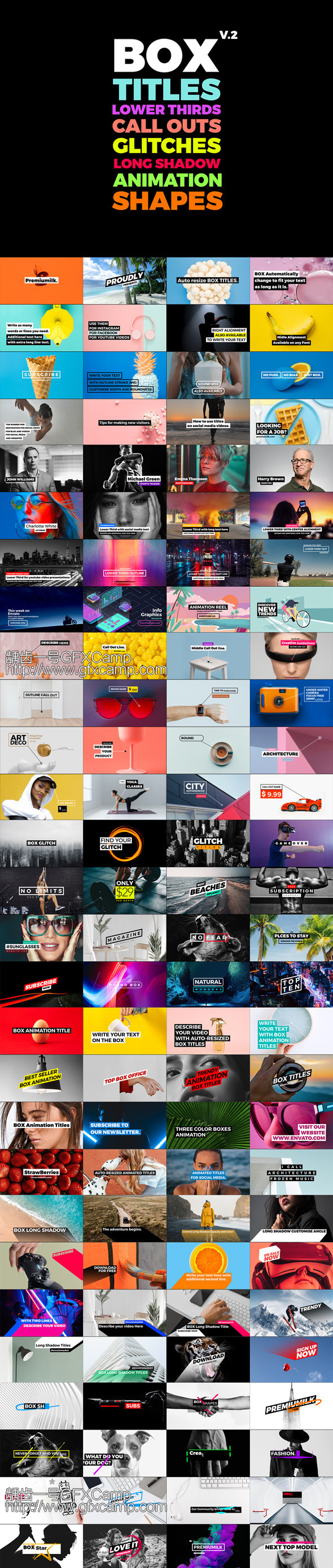 - 包括112组方框风格的文字标题、指示线、长投影、字幕条等文字动画,