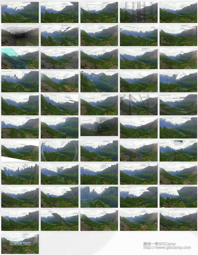 - 包含50组三维视差图形遮罩特效预设,也另外包含一个文字自定义效果,可以控制出入动画、摄像机角度、视差透明度、强度、图形大小等多种参数