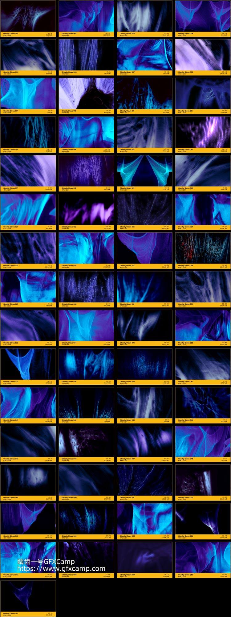包含61组恐怖惊悚风格纱布丝绸飘动的特效视频素材,4K分辨率,MP4格式,H264编码,不包含透明通道,修改混合方式(屏幕/滤色)即可叠加到自己视频上