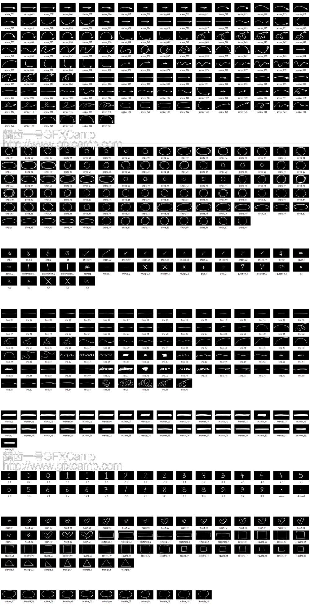 AE模板-485个手绘粉笔箭头路径圆圈数字图形动画+带通道视频素材