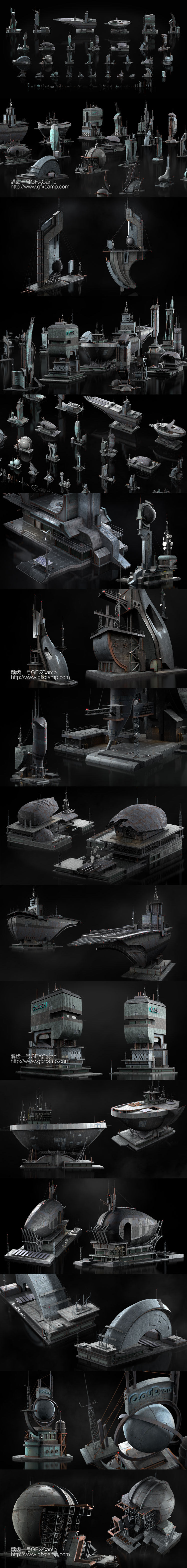未来科幻漂浮钢铁城市风格3D模型,这是单独的模型,不是直接做好的场景,每个模型都十分精细,包含贴图材质,包含C4D/FBX/OBJ/MAX/Maya/Blender/Houdini/Unity/Unreal格式
