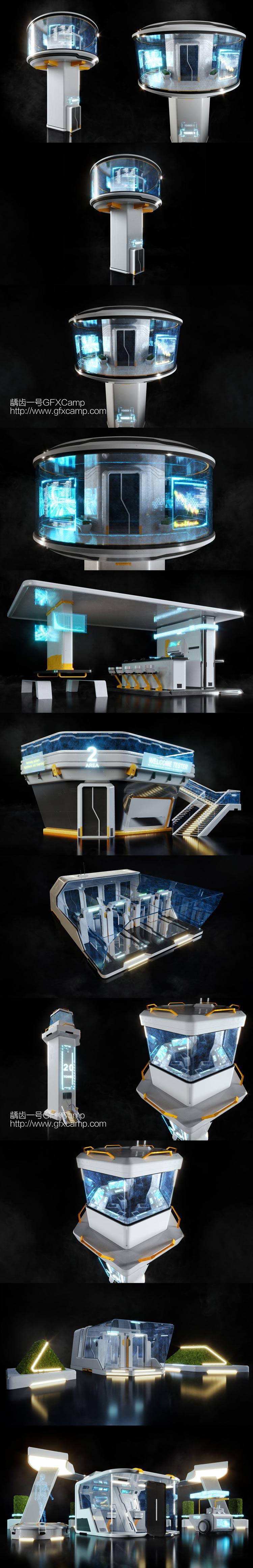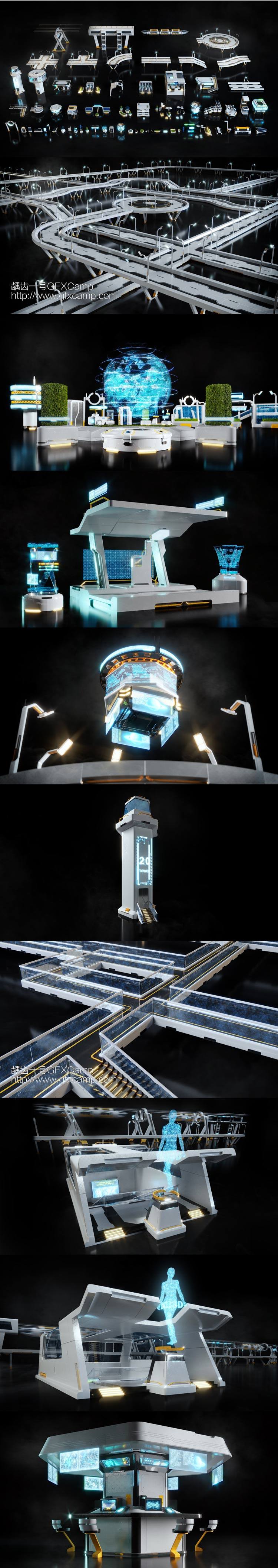未来科幻街道设施3D模型,这是单独的模型,不是直接做好的场景,每个模型都十分精细,包含贴图材质,包含C4D/FBX/OBJ/MAX/Maya/Blender/Houdini/Unity/Unreal格式