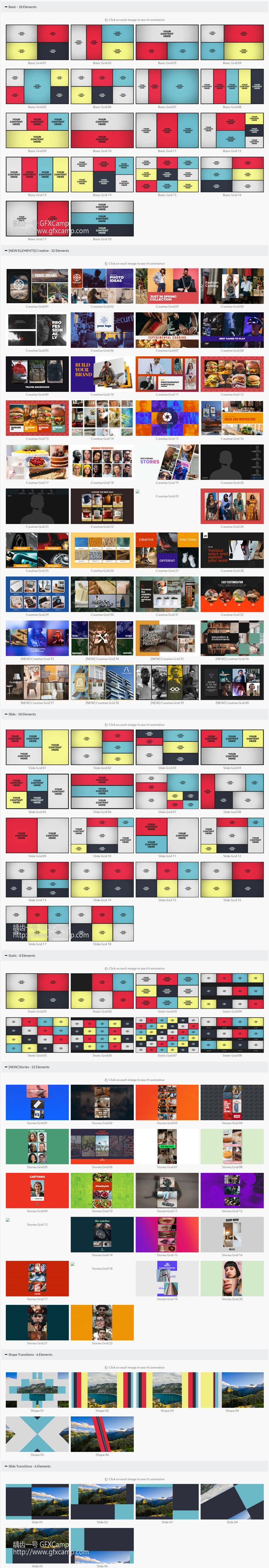 - 包含18组动态自定义分屏动画+18组自定义幻灯片分屏动画+8组静态分屏+32组做好的幻灯片动画+22组竖屏动画+6组转场+6组滑动转场