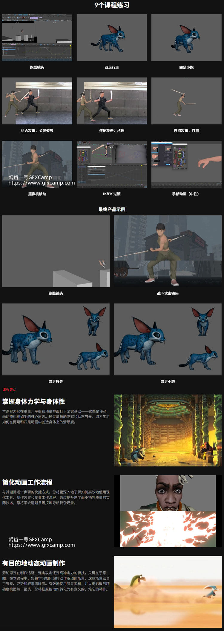 本教程超越运动力学,本课程在视觉叙事方面打下坚实基础。学生将探索如何运用摄像机角度、剪辑和场景布置来塑造引人入胜、易于阅读的动作镜头。涵盖两足和四足身体力学,培训结合了专业工作流程和创意洞察,包括跑酷镜头、四足动物走路跑步、多种攻击动作、摄像机移动、IK/FK、手部动画等