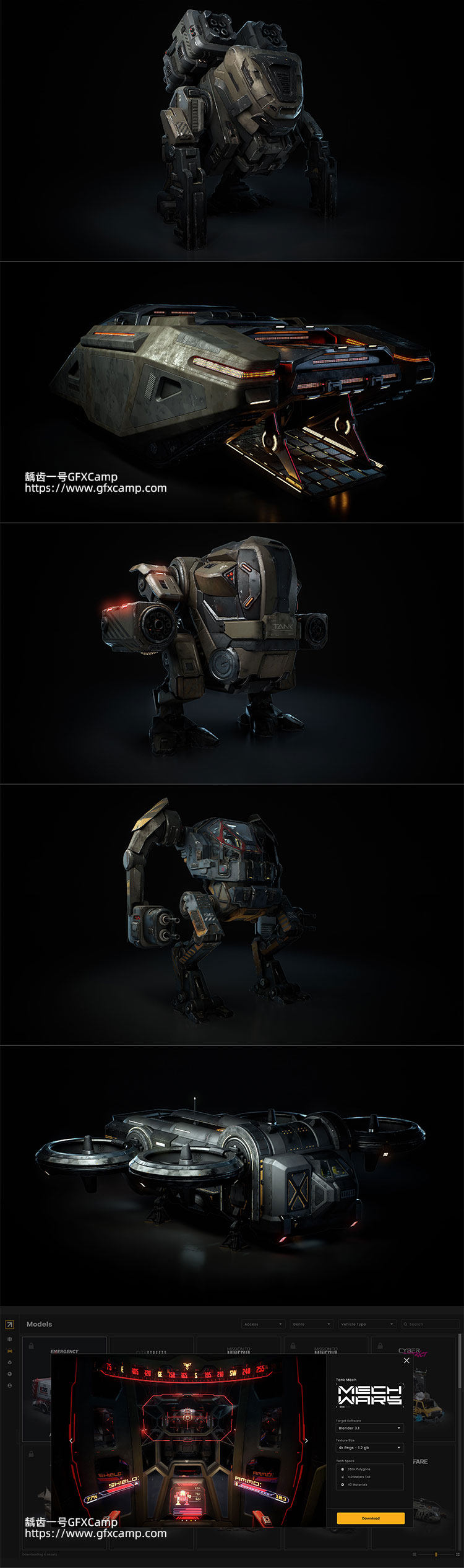 Blender科幻战争机甲飞船3D模型资产 Mech Wars