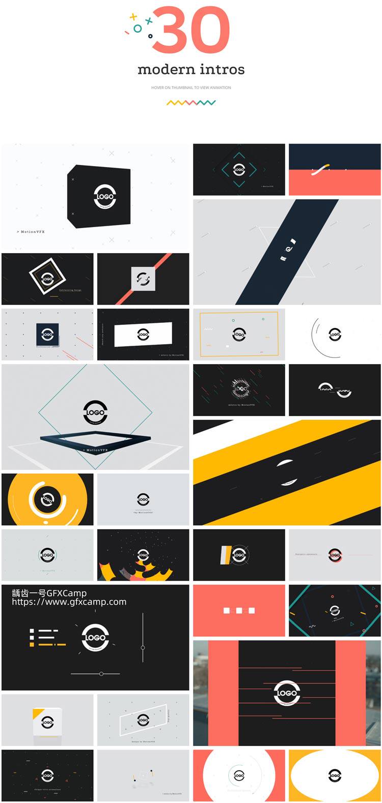 - 第一套包含30组片头Logo动画,只支持FCPX