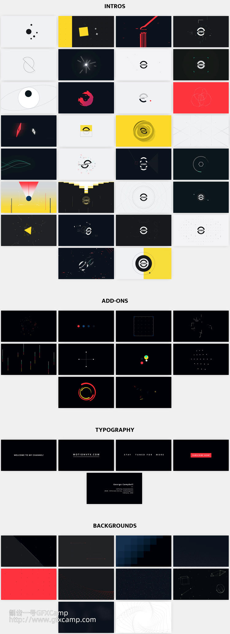 - 第二套包含30组片头Logo展示动画+10组背景动画+5组文字标题动画+10组小元素动画,支持FCPX和达芬奇