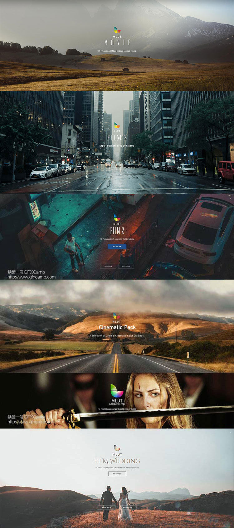 FCPX插件-195组视频电影vlog短片大气调色预设 mLUT Film 2 +3 + Cinematic + Blockbster Pack + Film Wedding + Movie 6套