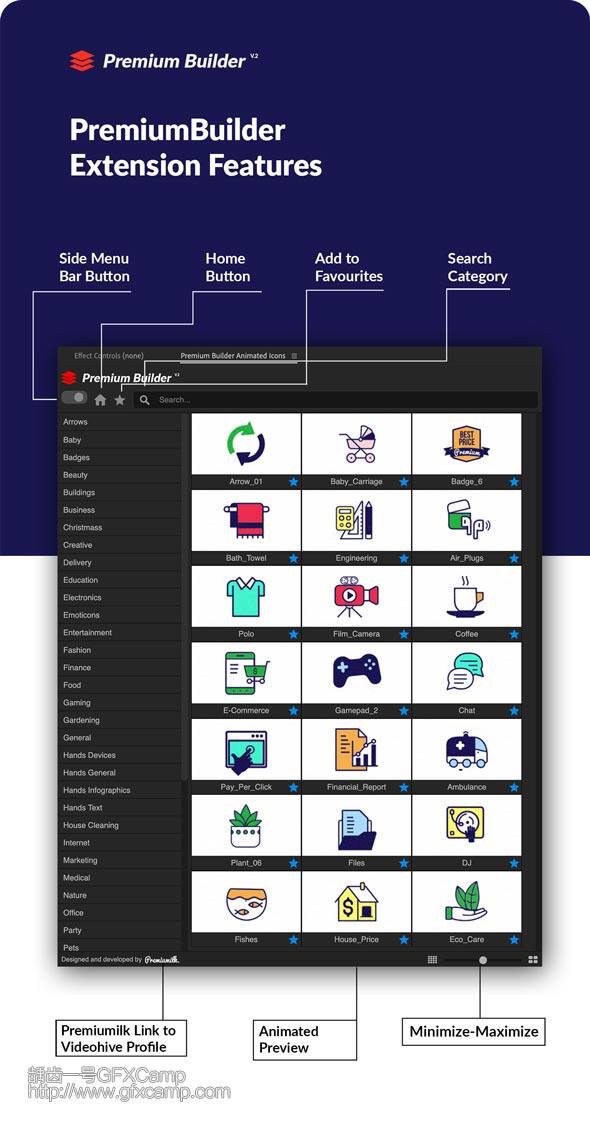 AE模板脚本+Premiere/PR脚本预设-1000组线条ICON图标扁平化MG动画