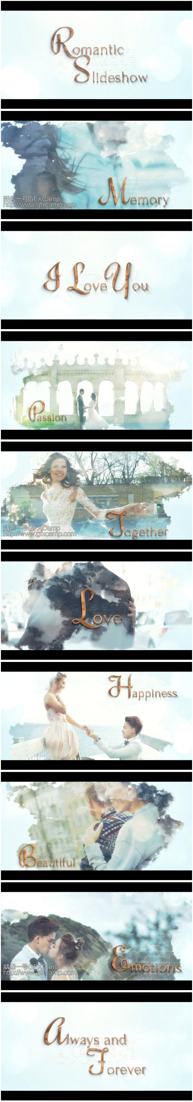 AE模板-水墨遮罩浪漫婚礼视频照片相册幻灯片包装片头+背景音乐