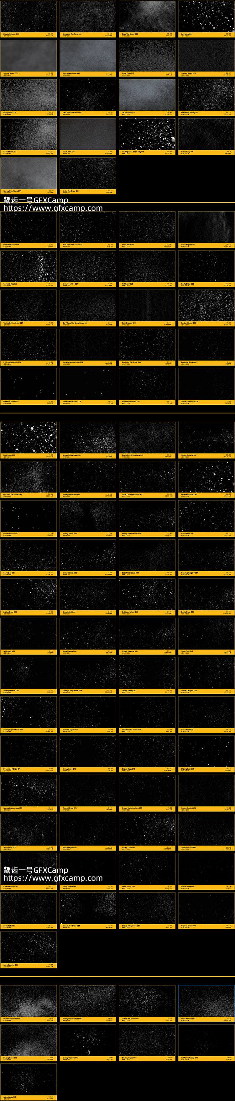 包含100组下雪、飘雪、大雪的视频素材,4K分辨率,MP4格式,H264编码,不包含透明通道,修改混合方式(屏幕/滤色)即可叠加到自己视频上