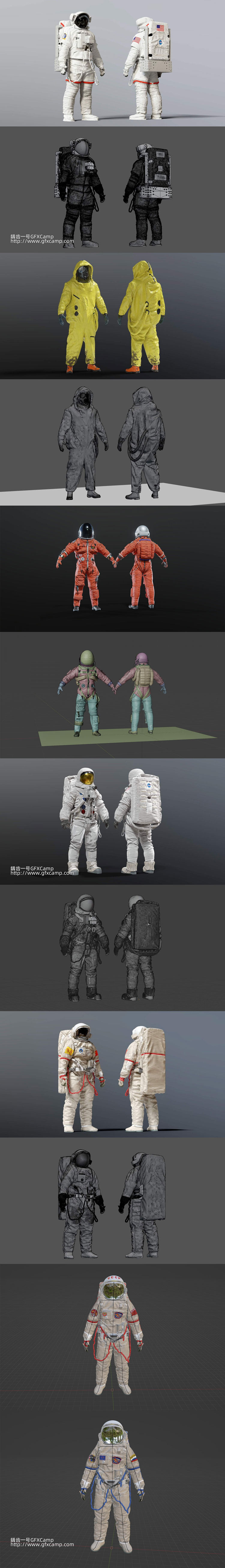 包含中国飞天、美国NASA、俄罗斯、阿波罗11号航天服3D模型,每个模型都十分精细,包含FBX/OBJ/Blender格式,其中Blender格式包含贴图,FBX和OBJ格式没有贴图