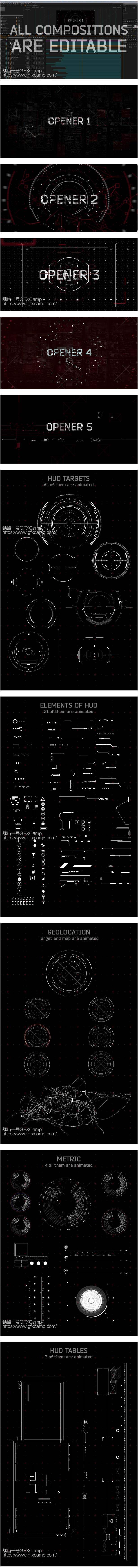 AE模板-点线高科技HUD犯罪科幻片头元素包