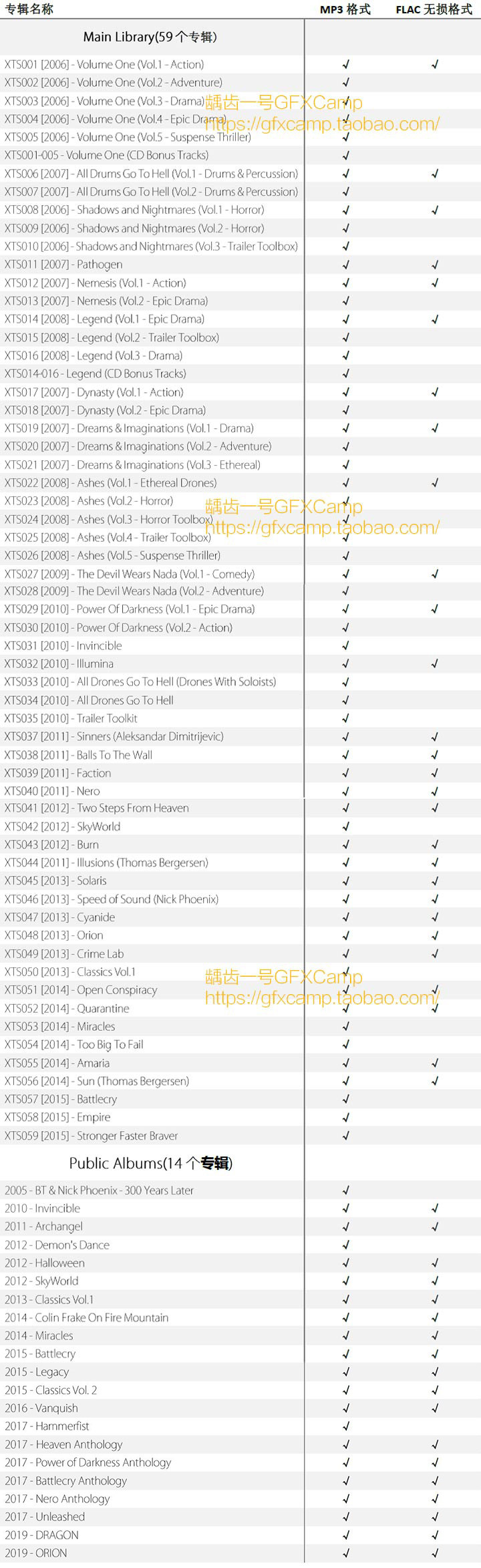 - 音乐格式:MP3(80个专辑,11G)+FLAC(46个专辑,36G),目前最全