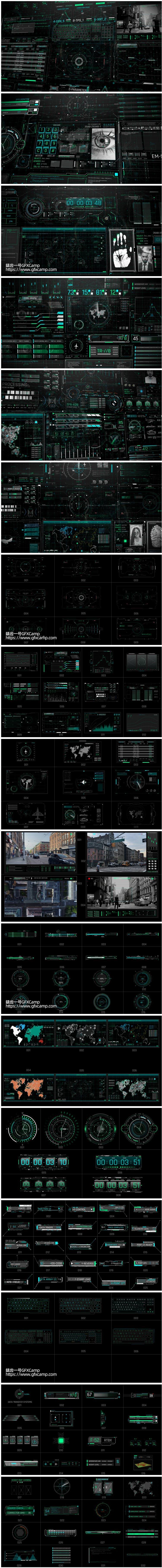 AE模板+PR预设-科技感HUD界面UI动画元素包