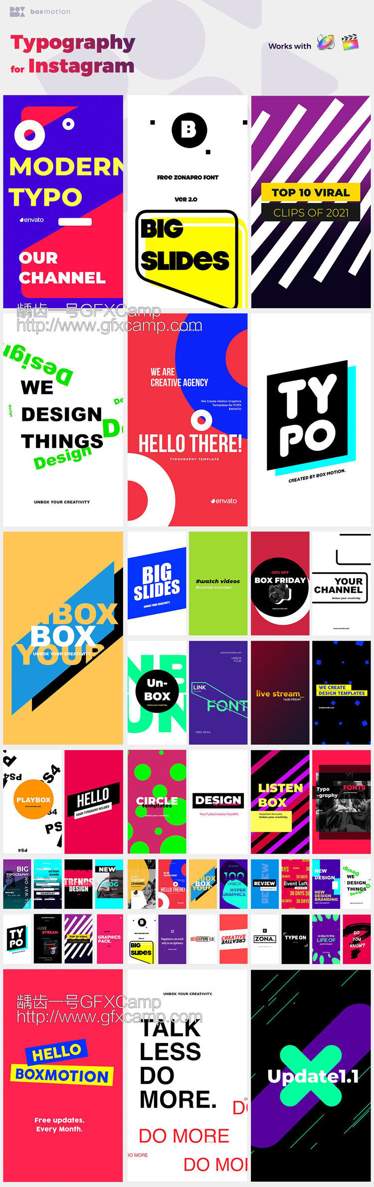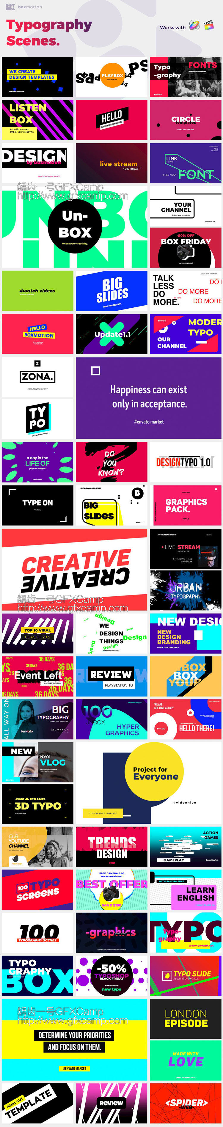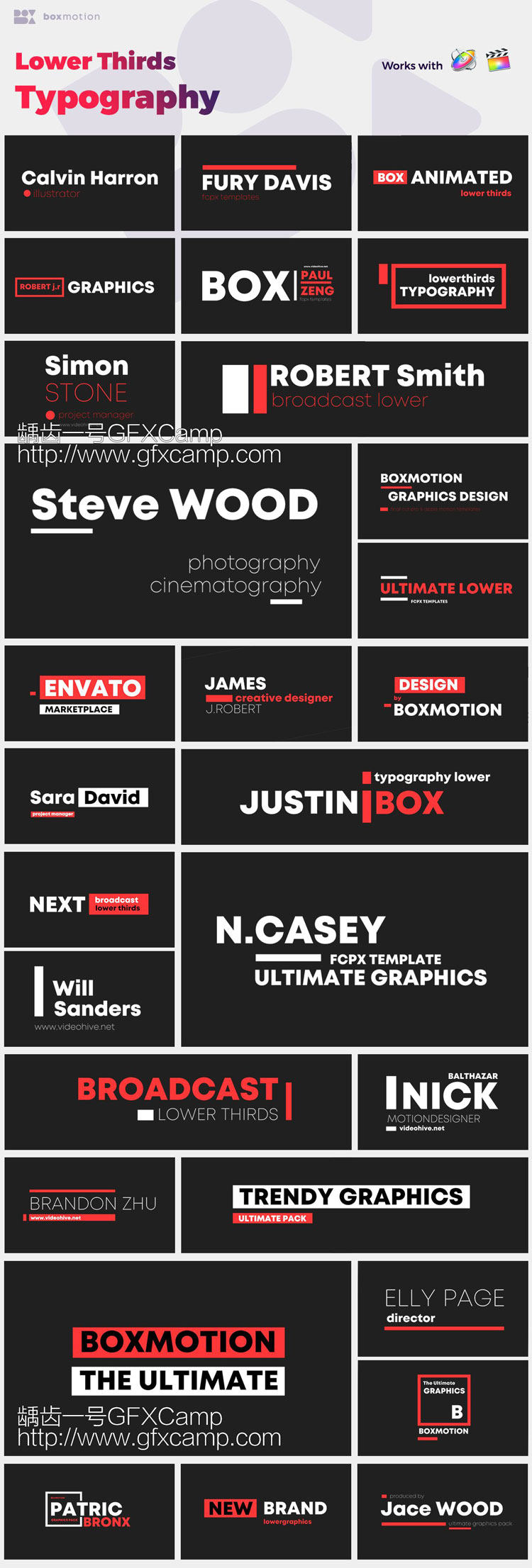 FCPX插件-120组文字标题字幕条排版竖屏图形背景动画预设
