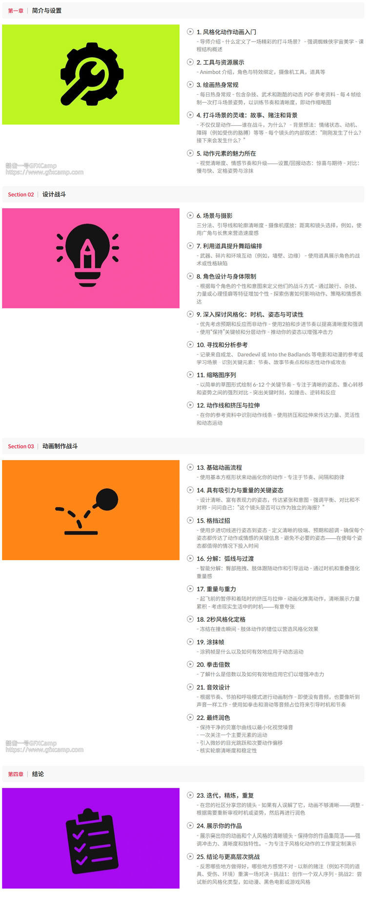 本课程教你如何在Maya中使用专业级别的制作流程来规划、动画制作并润色一个具有高冲击力的战斗动画, 包括摄像机与构图、场景道具、动画流程、布局、特效等