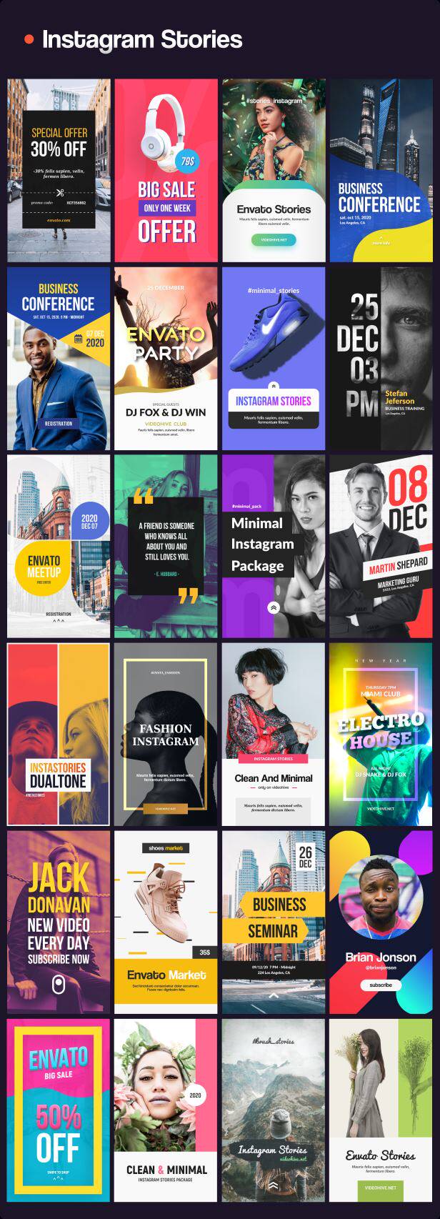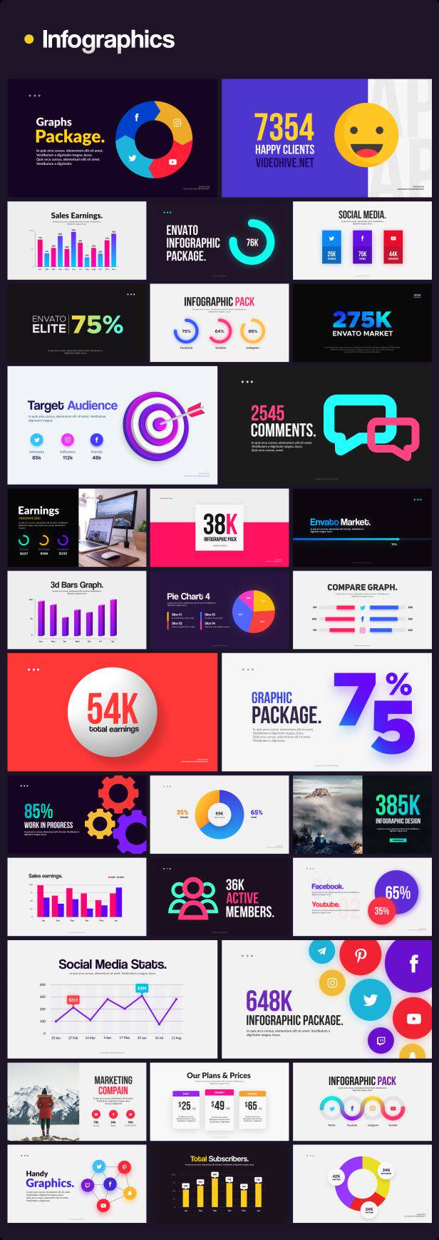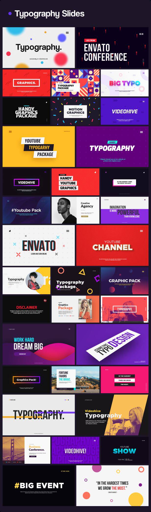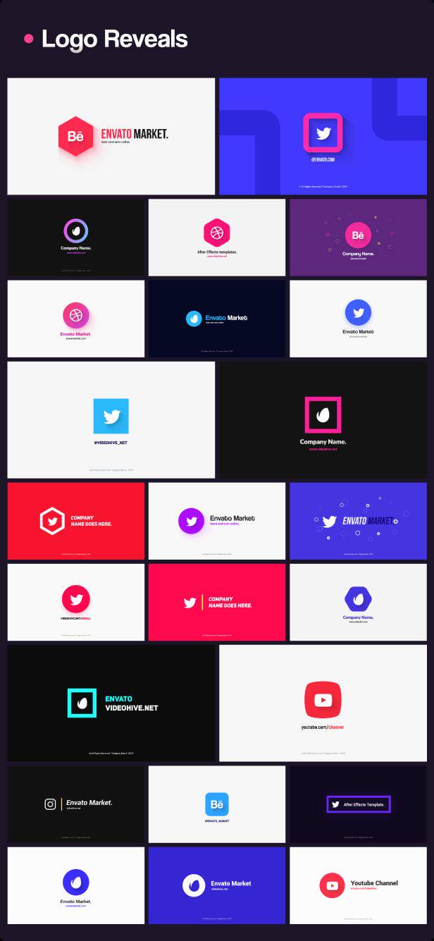 包含文字排版、文字标题、人名字幕条、社交动画、背景动画、图形动画、信息数据、Logo动画、图形转场等多种元素动画,所有元素的文字、颜色等基本参数都可以修改,包含动图预览,包含每个动画单独的工程文件,通过Motion Factory脚本来调用(脚本使用要求2018或者更高版本),使用很方便,文字、颜色等都可以修改